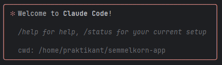 [Screenshot: Claude Code Terminal mit Hilfreichem Vorschlag]